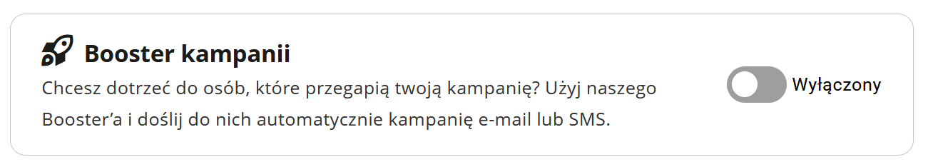 1. Aby skorzystać z funkcji Booster, znajdź sekcję "Booster kampanii" w podsumowaniu kampanii i przesuń przełącznik, aby ją **włączyć**. Domyślnie funkcja ta jest wyłączona.
