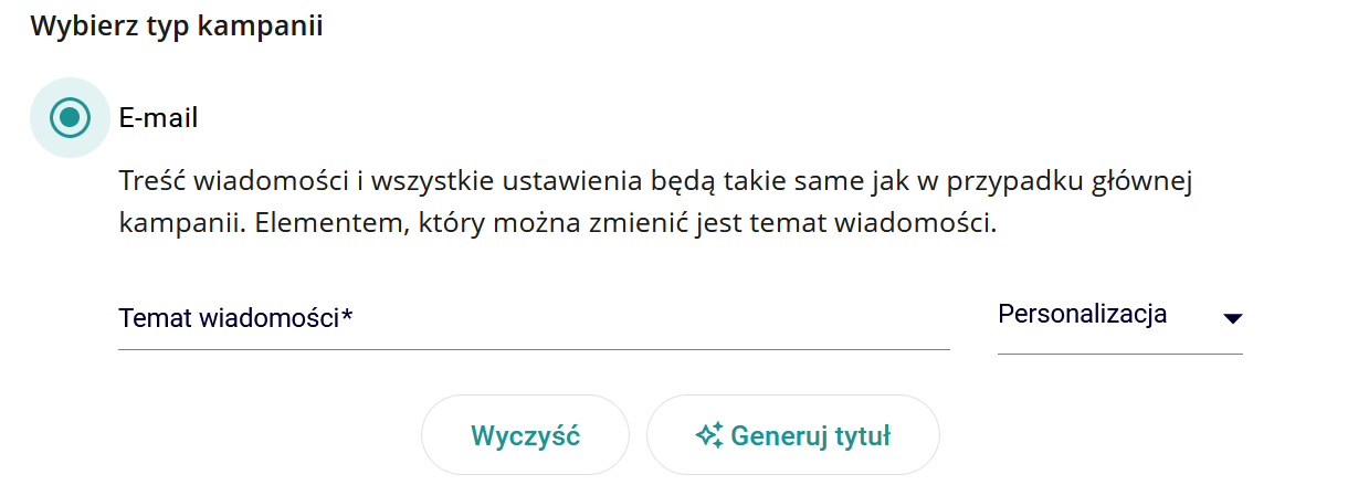 * Możesz (i zalecamy) wprowadzić **nowy, angażujący temat** dla wiadomości Booster. Temat nie jest automatycznie kopiowany z kampanii głównej, więc ustaw go samodzielnie lub skorzystaj z naszego generatora AI.