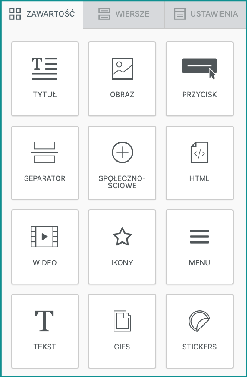 * Wybierz odpowiedni element z zakładki **Zawartość**, np. tekst, obraz, przycisk lub wideo.